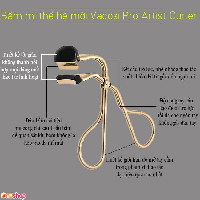 Hiểu được tâm lý khách hàng NUSHOP xin giới thiệu Bấm mi thế hệ mới Vacosi Pro Artist Curler – đây là sản phẩm chuyên nghiệp không chỉ dùng cho việc trang điểm cá nhân mà còn là dụng cụ không thể thiếu của các chuyên gia makeup.