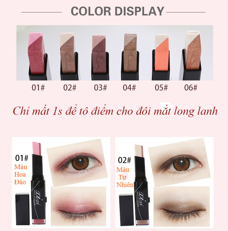 - Sản phẩm có 2 màu kết hợp rất tự nhiên : đó là sự kết hợp hoàn hảo giữa gam màu chủ đạo tự nhiên với nền bóng làm sáng màu da quanh mắt.