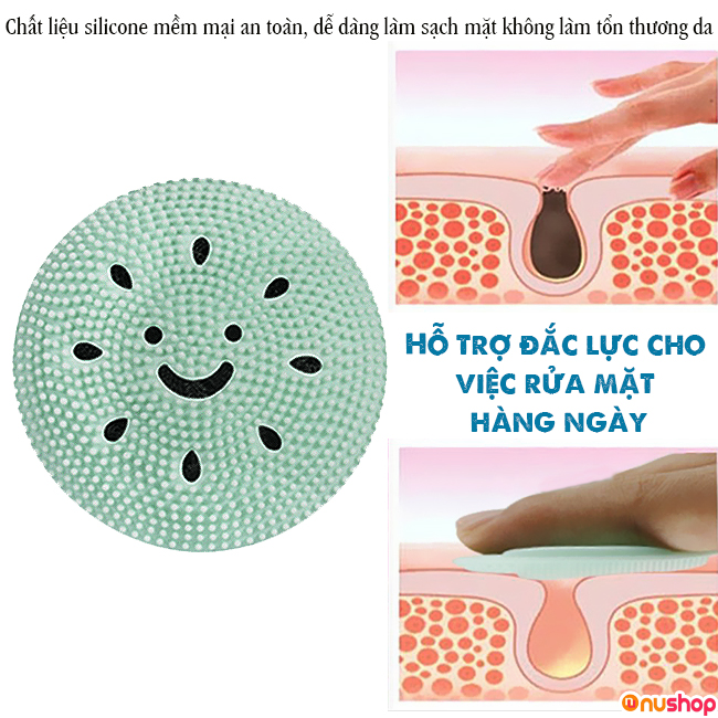 chất liệu silicone mềm mại an toàn, tạo bọt dễ dàng, tăng hiệu quả làm sạch da