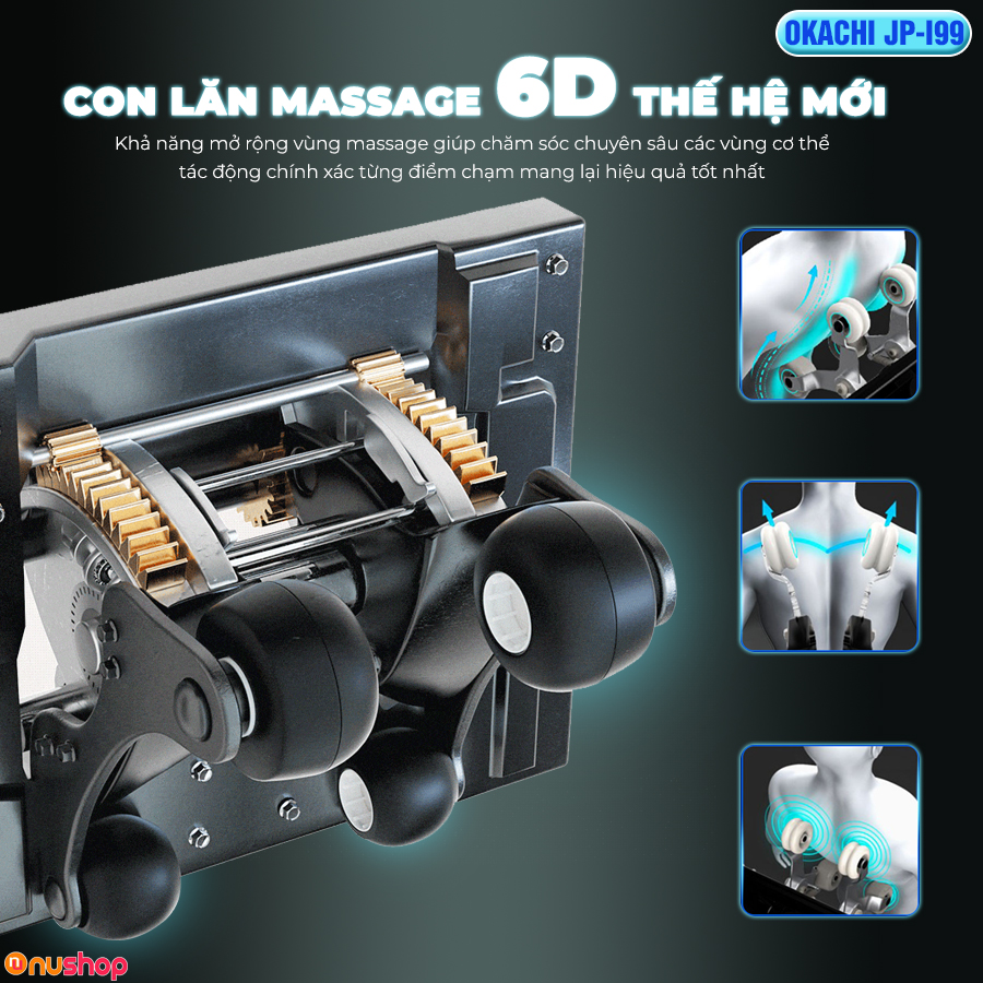 Công nghệ massage 6D tác động sâu và rộng hơn so với các con lăn thế hệ trước đây. Con lăn di chuyển trên đường ray SL 135cm, kéo dài từ cổ đến tận mông – đùi. Mở rộng vùng tiếp xúc mang đến những trải nghiệm massage tuyệt vời, chuyên sâu hơn bao giờ hết.