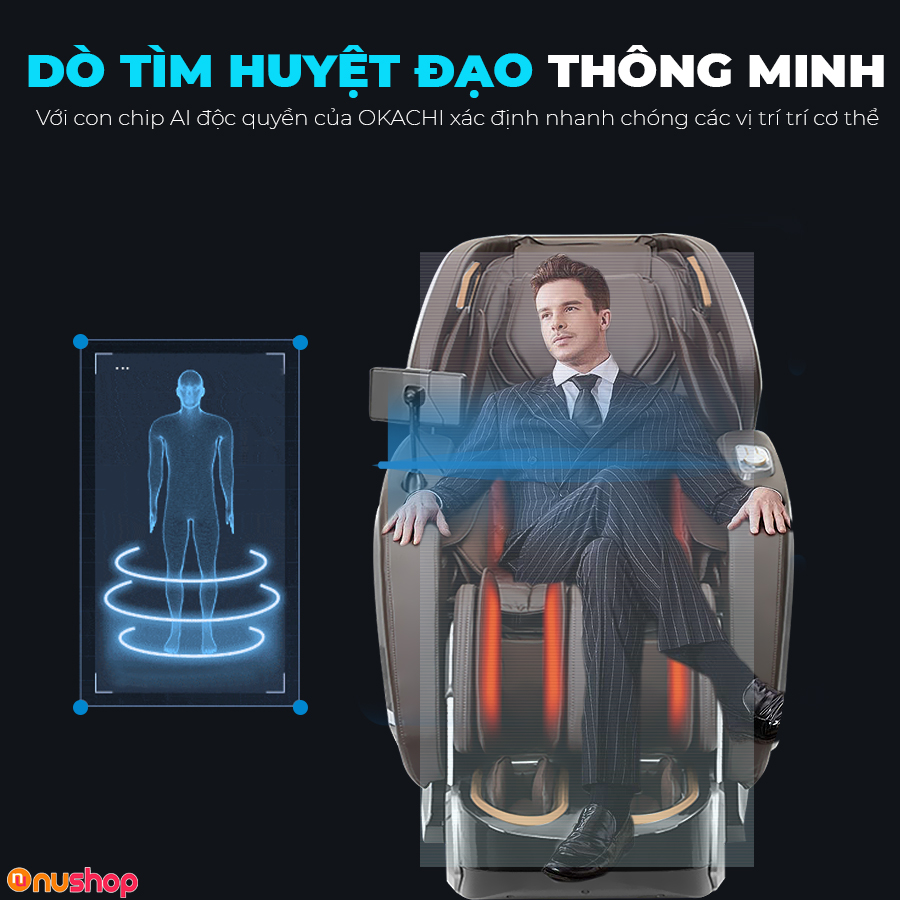 Như các dòng ghế massage cao cấp khác, OKACHI LUXURY JP-I99 cũng tích hợp tính năng dò tìm huyệt đạo thông minh. Sử dụng con chip A.I độc quyền của Okachi – Nhật Bản có khả năng xác định nhanh chóng những vị trí đau mỏi trên cơ thể bạn, chính xác đến 98%.