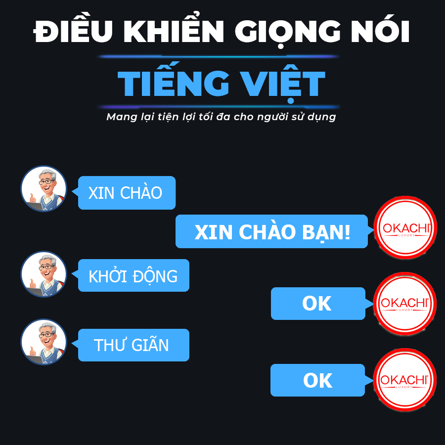 Bạn không cần lo ngại người cao tuổi hay người không rành về công nghệ khó sử dụng ghế massage nữa. Bởi Ghế massage toàn thân OKACHI LUXURY JP-I99 (màu nâu đen) có tính năng điều khiển bằng giọng nói Tiếng Việt, với những câu lệnh ngắn và đơn giản, dễ nhớ.