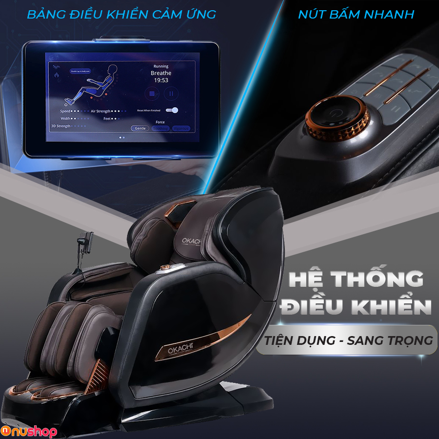 Ghế massage toàn thân OKACHI LUXURY JP-I99 (màu nâu đen) chinh phục người dùng bởi khả năng thấu hiểu, mong muốn trải nghiệm tốt nhất. Vì vậy mà sản phẩm sở hữu hệ thống điều khiển hiện đại, thông minh và tiện dụng với màn hình cảm ứng lớn cùng phím điều khiển nhanh ở tay vịn.
