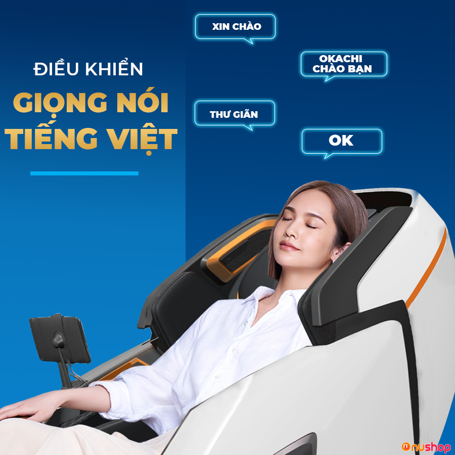 Không phải là chiếc ghế massage đầu tiên có tính năng nhận diện giọng nói Tiếng Việt, nhưng OKACHI LUXURY ROYAL JP-8899 chắc chắn là phiên bản mang đến sự hoàn hảo cho người dùng trải nghiệm. Tính năng điều khiển giọng nói Tiếng Việt của ghế sẽ thay bạn chăm sóc sức khỏe cho ông bà, cha mẹ lớn tuổi e ngại khi khó sử dụng công nghệ trên màn hình cảm ứng. Tối ưu hóa những trải nghiệm massage, mang đến sự thoải mái, tiện lợi cho người Việt.