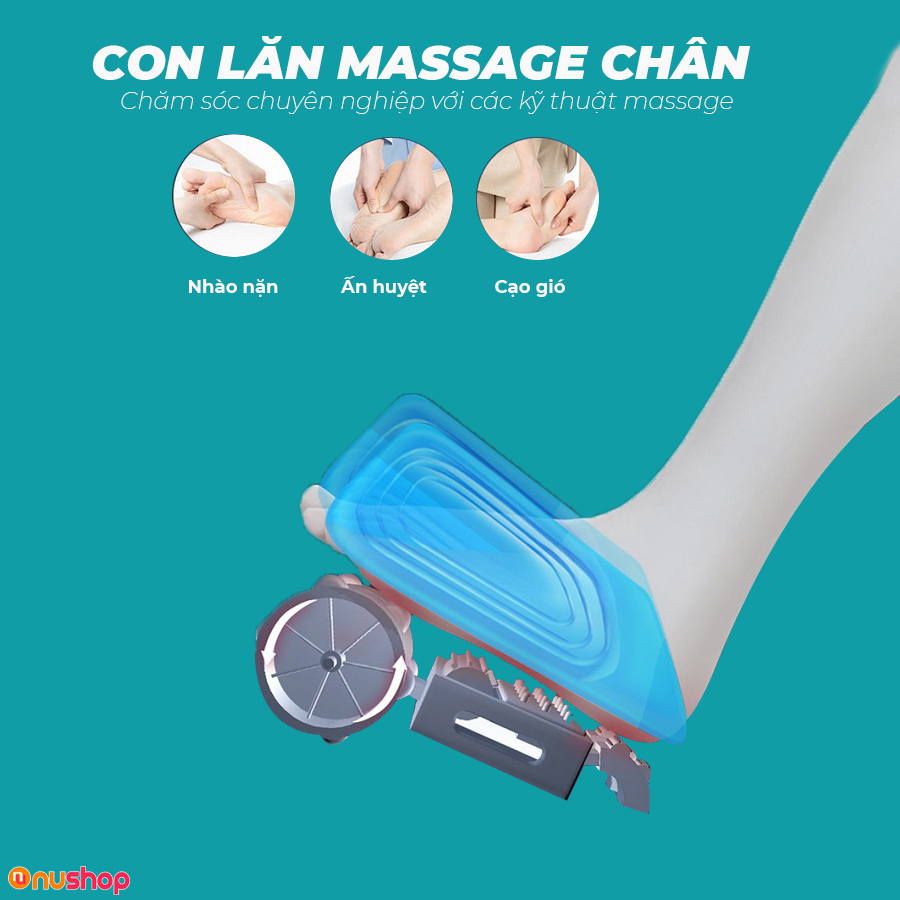 Ngoài túi khí ôm sát đôi chân thì con lăn massage lòng bàn chân là tính năng nổi trội, được người tiêu dùng yêu thích. Với khả năng tác động sâu vào hõm chân, tiến hành các kỹ thuật ấn huyệt, cạo gió, vuốt, ray,… thông qua các dây thần kinh tác động đến cơ quan trong cơ thể cải thiện đau nhức, bệnh tim mạch, huyết áp,…