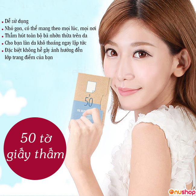 - Khả năng kiểm soát dầu gấp 3 lần so với các loại giấy thấm dầu truyền thống, đồng thời còn ngăn ngừa mụn, giúp da thông thoáng, sạch sẽ và mịn màng.
