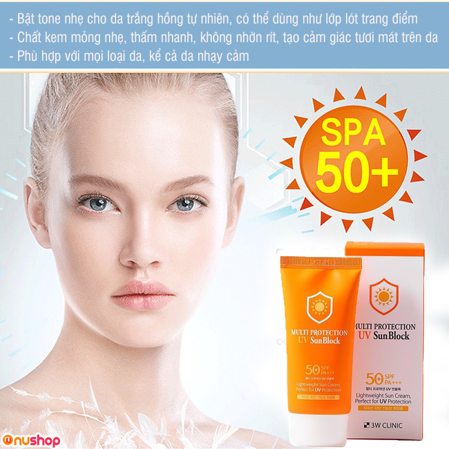 Giới thiệu đến bạn Kem chống nắng 3W Clinic Multi Protection UV Sunblock – là sản phẩm có giá bình dân đến từ Hàn Quốc, được chị em công sở, sinh viên… yêu thích. Không chỉ giá thành hấp dẫn mà hiệu quả chống nắng rất tốt, thời gian bảo vệ da lâu, khi thoa lên da sẽ thấm nhanh.