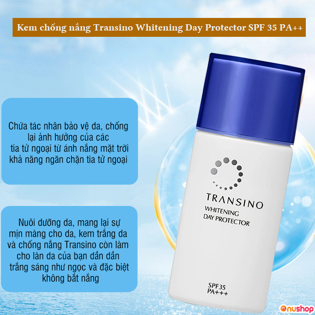 Thị trường mỹ phẩm hiện nay có nhiều shop bán hàng giả mạo, kém chất lượng do lợi ích cá nhân. Khi mua Kem chống nắng Transino Whitening Day Protector bạn cần đến địa chỉ uy tín như NUSHOP để bảo vệ da an toàn và không lo mua hàng phí tiền nhé!
