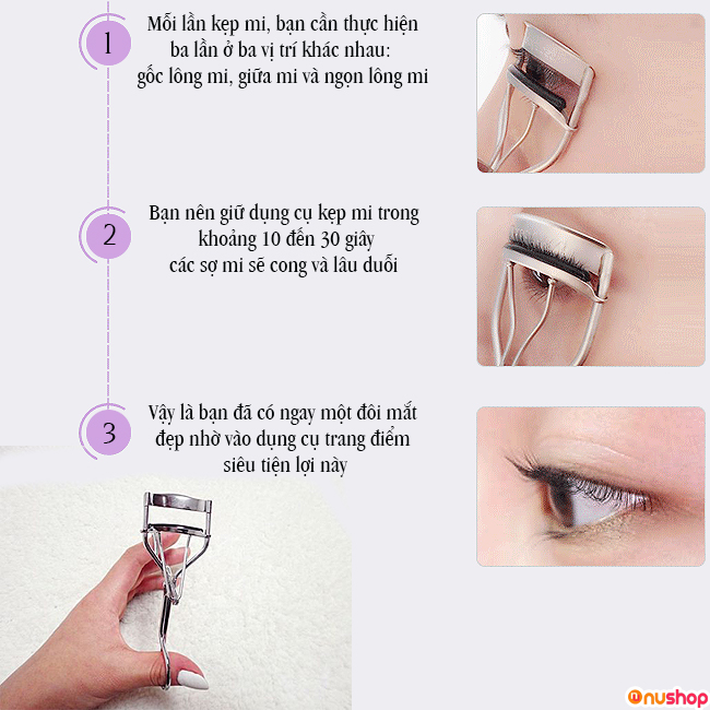- Mỗi lần kẹp mi bạn nên thực hiện từ 3 vị trí khác nhau: gốc mi, giữa mi và ngọn lông mi.