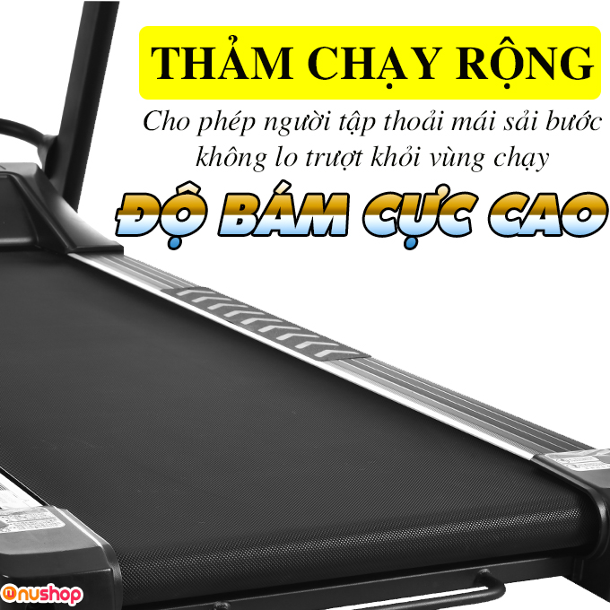 Thảm chạy dày và cực kỳ rộng, làm từ chất liệu sợi tổng hợp PVC cao cấp (5 lớp vật liệu) chống trượt, độ bền cao. Diện tích vùng chạy rộng nên bạn sẽ dễ sải bước, thoải mái chạy nhanh chậm – đi bộ, giúp đạt được kết quả như ý trong quá trình luyện tập.