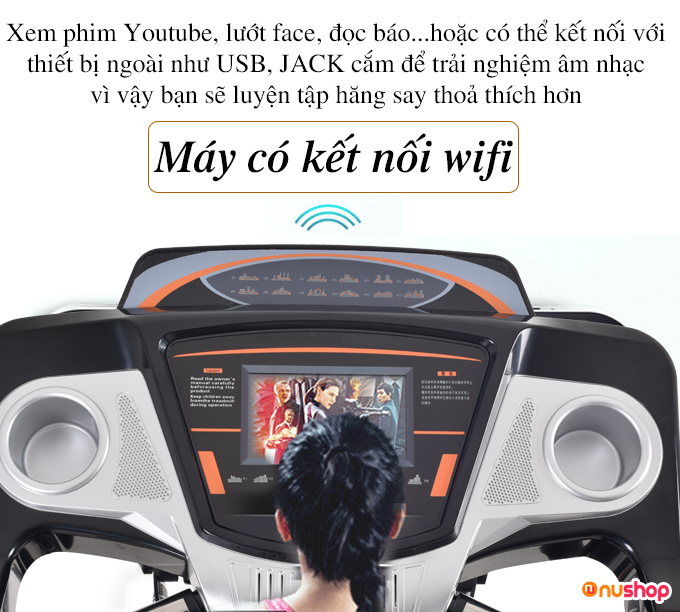 Được tích hợp tính năng kết nối wifi cho bạn thư giãn trong quá trình tập vừa xem Xem phim, Youtube, lướt face, nghe nhạc…vừa chạy bộ.