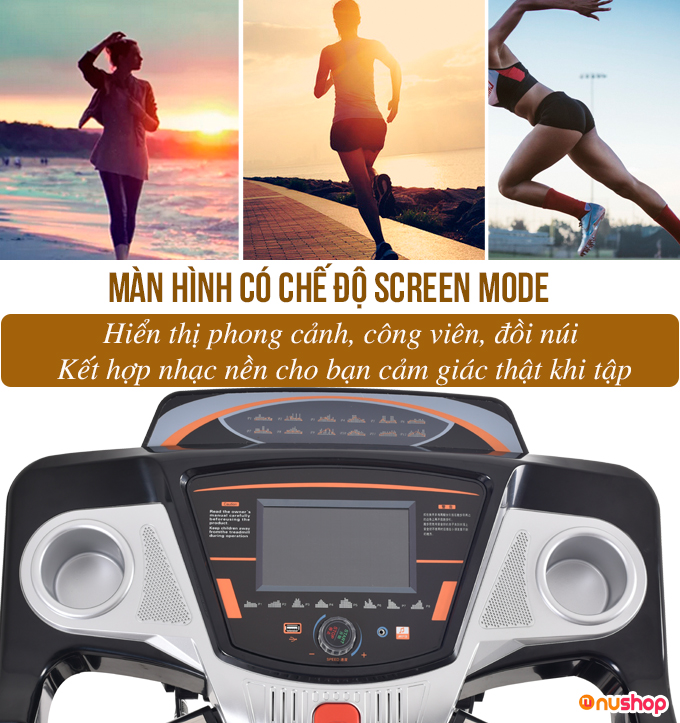 Tính năng Screen Mode với công nghệ mới nhất giả lập phong cảnh 3D siêu thực như công viên, đồi núi…tăng thêm hứng thú tập luyện tại nhà.