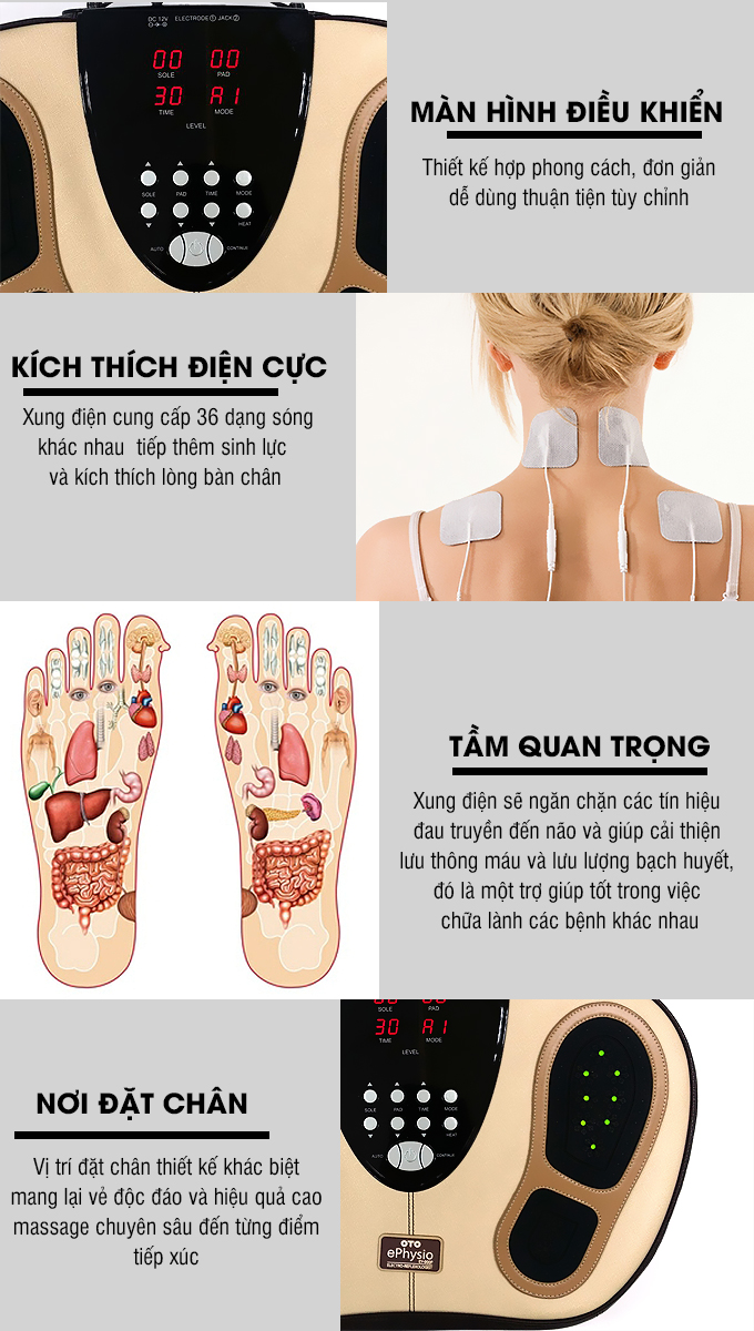 Máy massage chân trị liệu e-Physio Plus OTO EY-900P Giúp giảm đau nhanh chóng, tăng cường cơ bắp, cải thiện lưu thông máu ... là một sản phẩm trợ giúp tốt nhất trong việc điều trị nhiều bệnh khác nhau
