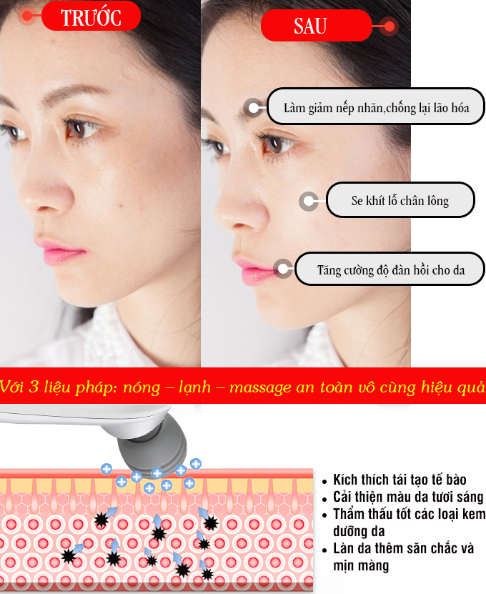 Máy có 3 bước chăm sóc da hiệu quả: liệu pháp nóng – lạnh – massage: