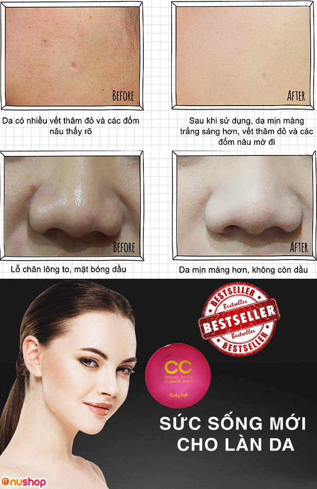 - Hạt phấn siêu mịn, hút dầu, che khuyết điểm cực tốt, hoàn toàn không bết dính, bóng nhờn trong suốt 12 tiếng.