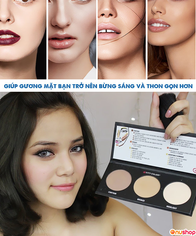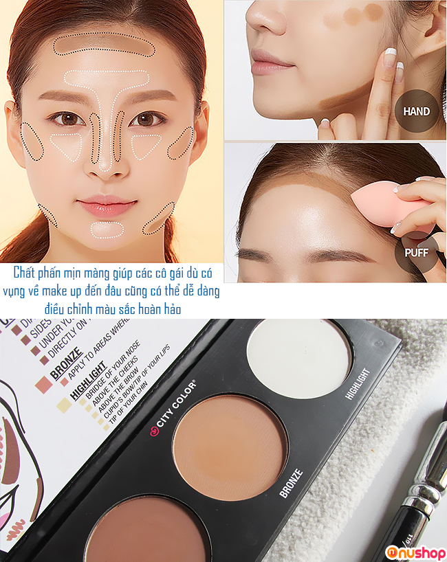 - Phấn tạo khối City Color có xuất xuất từ Mỹ với 3 màu phục vụ nhu cầu tạo khối nhanh chóng để chị em có gương mặt sắc sảo.