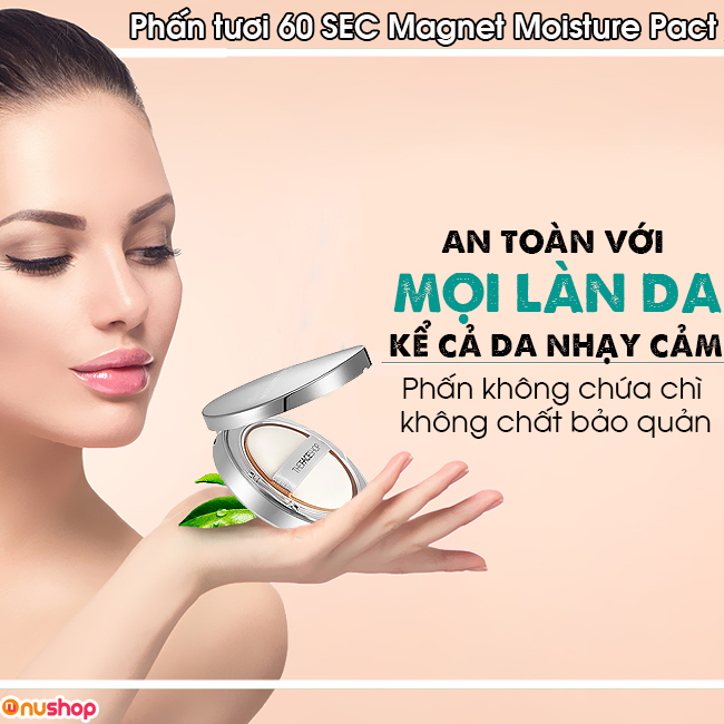 - Sản phẩm gồm có: 1 phấn tươi 60 SEC Magnet Moisture Pact 11g và 1 xịt khoáng Moisture Magnet Mist 50ml.
