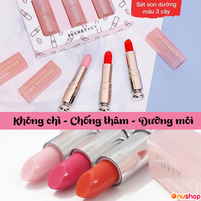 Set Son Dưỡng Có Màu Secret Key Sweet Glam Tint Glow là lựa chọn tối ưu của mỗi người phụ nữ, nhất thiết phải có để chăm sóc và làm đẹp đôi môi mình. Không khó để mua được sản phẩm chính hãng chỉ cần liên hệ NUSHOP mọi thắc mắc chúng tôi sẽ tư vấn cụ thể cho bạn và nhận hàng nhanh chóng trong thời gian sớm nhất.