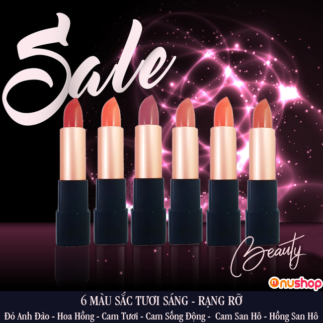 Son lì bền màu, lâu trôi với 6 màu sắc cho bạn thoải mái tự tin lựa chọn, phù hợp với các bữa tiệc, dạo phố, hẹn hò...