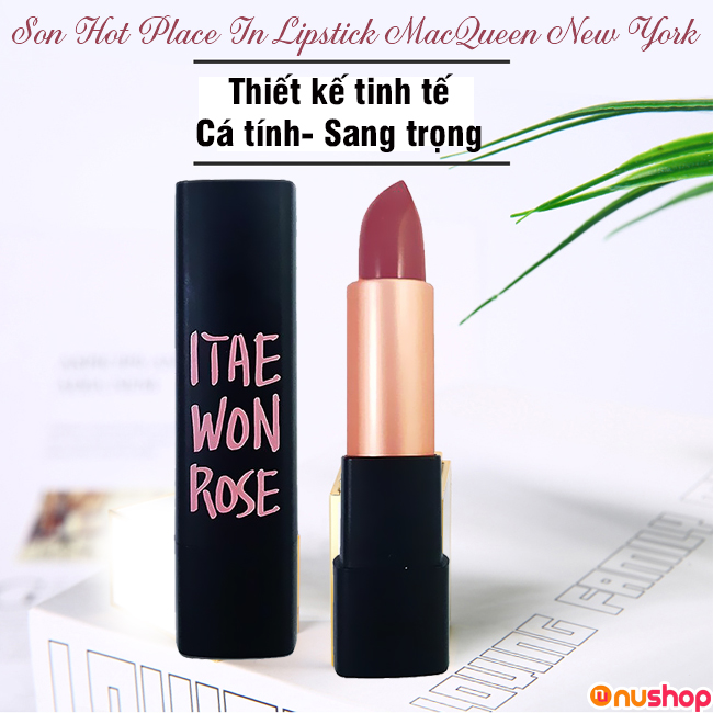 Vì vậy, NUSHOP sẽ giới thiệu đến bạn Son Hot Place In Lipstick MacQueen New York – chất mềm mịn, nhẹ nhàng khi thoa, lên tone màu cực chuẩn, đem lại vẻ nổi bật, ấn tượng cho bạn. Đặc biệt, thương hiệu MACQUEEN – đang được ưa chuộng nhất hiện nay, sản xuất nhiều mẫu mã son nổi bật, sang trọng, phù hợp mọi độ tuổi.