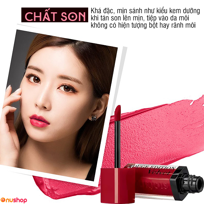 Để không phải lăn tăn tìm hiểu về Son Kem Bourjois Rouge Edition Velvet thật giả, tiết kiệm thời gian, mua được hàng chính hãng với giá tốt hãy đến ngay NUSHOP – cửa hàng uy tín được đông đảo khách hàng tin tưởng tại Việt Nam.