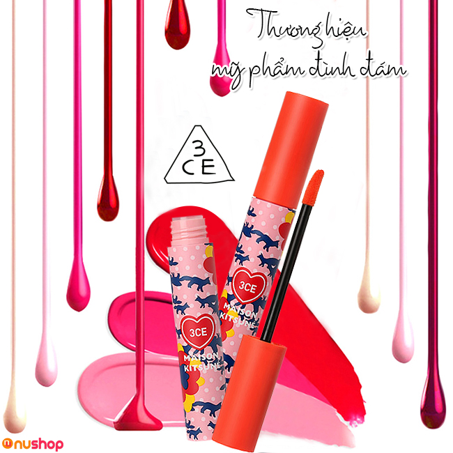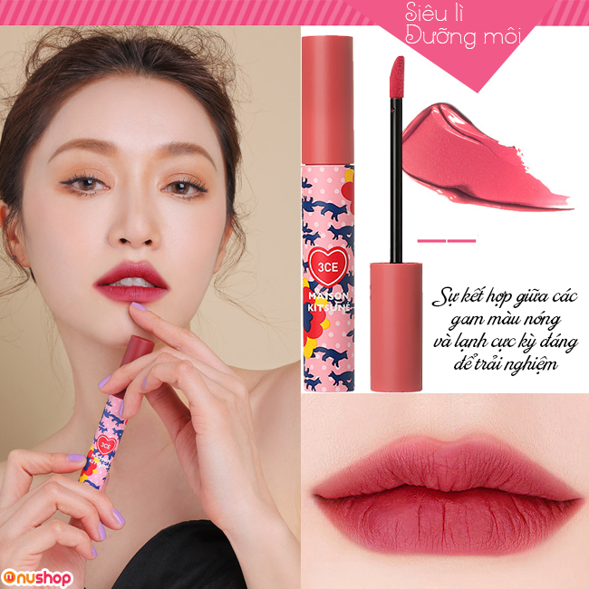 Thương hiệu 3CE luôn tung ra những dòng son siêu phẩm làm đốn tim các tín đồ mê makeup. Gần đây nhất, thương hiệu này đã đem đến cho các bạn gái sự xao xuyến, tạo nên cơn sốt truy lùng sản phẩm Son kem lì 3CE Maison Kitsune Velvet Lip Tint. Với những tone màu thời thượng, màu son cực chuẩn, chất son mềm mượt, không chì, độ bám cao đã đem lại sự khác biệt so với các phiên bản cũ và dòng son khác trên thị trường.