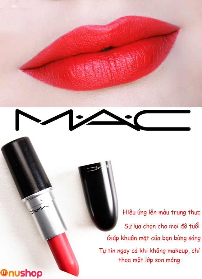 Thương hiệu MAC – thân thuộc và được nhiều cô nàng yêu thích nhờ các sản phẩm làm đẹp ấn tượng, sang trọng, chuyên nghiệp và vô cùng đẳng cấp. Dòng son lì của MAC với nhiều ưu điểm lớn đã làm khuấy động thị trường son môi trên toàn thế giới.