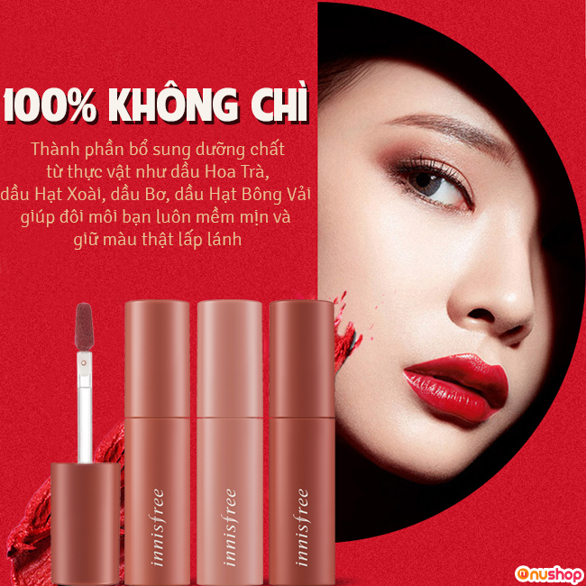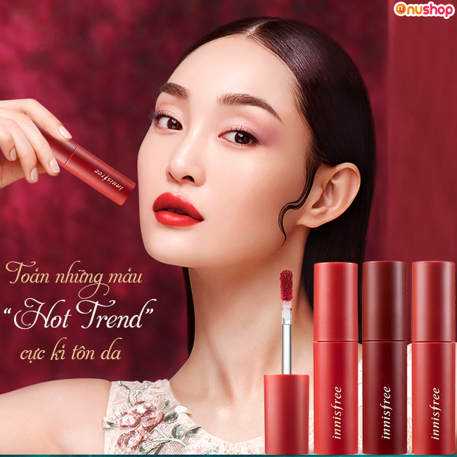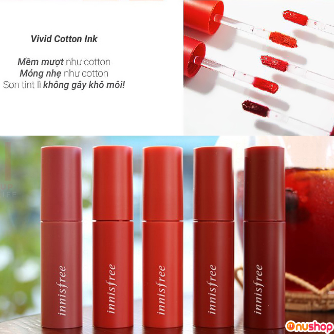 Nushop chia sẻ đến bạn, Son tint Innisfree Vivid Cotton Ink với chất son mỏng nhẹ, siêu mịn, không gây nặng môi, bộ sưu tập đủ các màu sắc thời thượng sẽ chinh phục mọi cô gái ngay từ lần đầu sử dụng đấy!