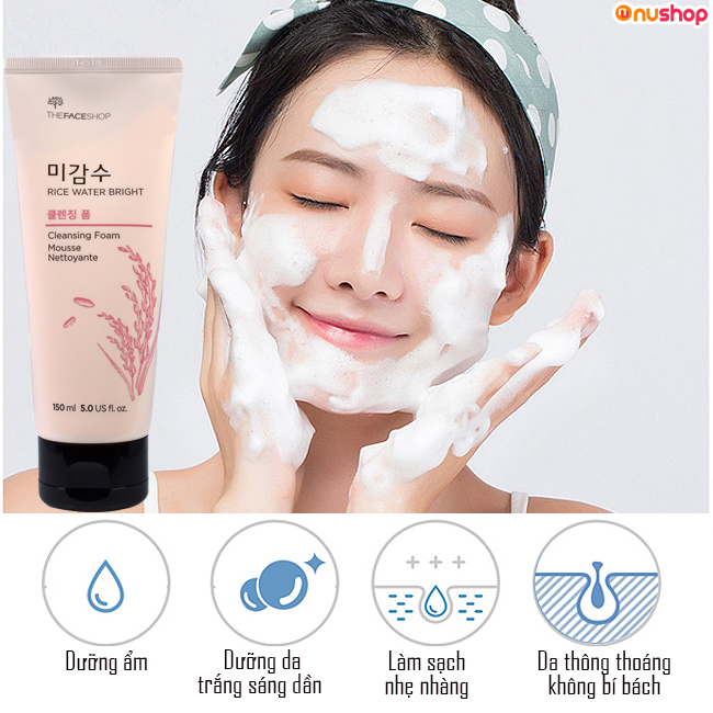 Hướng dẫn dùng Sữa rửa mặt gạo Rice water bright The Face Shop