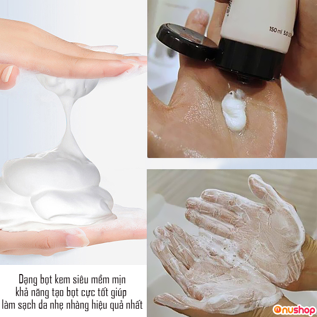 Bước 2 cho một lượng sữa rửa mặt vừa đủ vào lòng bàn tay sau đó xoa nhẹ nhàng để tạo bọt.