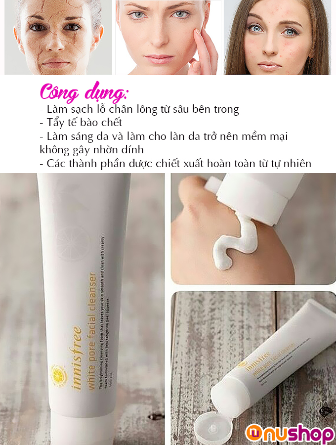 Sữa Rửa Mặt Innisfree White Pore Facial Cleanser phù hợp với nhiều loại da mà đặc biệt có thể điều trị tốt cho da xỉn màu, nhiều nốt thâm nám.