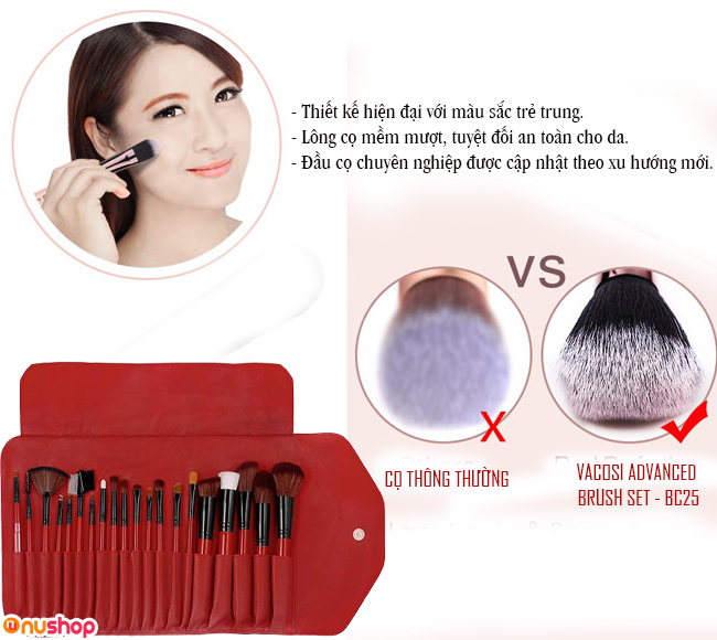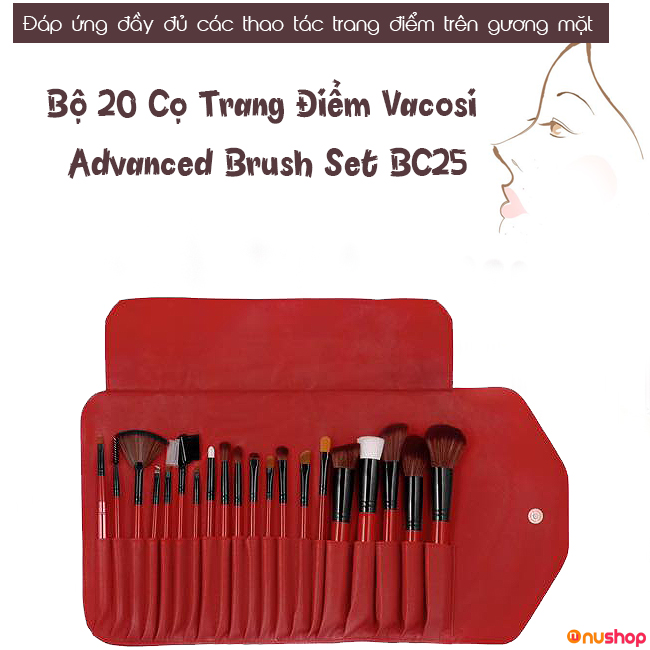 Vacosi Advanced Brush Set BC25 sẽ là bộ cọ tốt nhất dành tặng cho những quý cô là tín đồ make up và những ai đang tập tành trang điểm. Sản phẩm hiện đang được bán tại NUSHOP với giá niêm yết từ nhà sản xuất, nhanh tay đặt mua ngay hôm nay thôi nào!