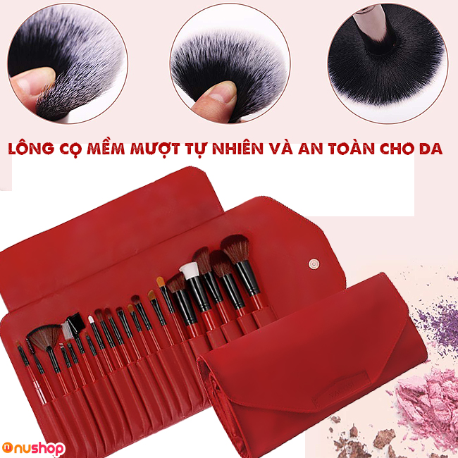 - Bộ cọ này đi kèm với túi đựng tiện lợi và đẹp mắt màu đỏ sang trọng, dễ dàng mang theo bên mình mỗi khi di chuyển.